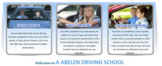A ABELEN Driving School provides excellent instruction and will get you on the road fast. We are a Texas authorized driving school with State approved instructors. Our instructors are professional, patient, friendly, reliable, and are licensed by the State of Texas. All of our services include Teens Driver Education course, Adults Driver Education, Door to door pick up and drop off service for adults. Whether you require our Teens program,Private one-on-one lessons,highway lessons, or road test preparation service, which includes instruction in parallel parking,freeway driving,we will help.