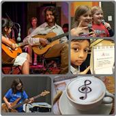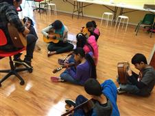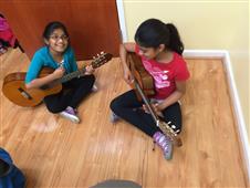 Acoustic, Electric or Bass - We play them all. We focus on both training by the ear as well as reading music. We start off with songs that build on major chords and work on arrangements that require stronger muscular coordination.