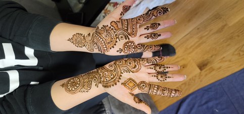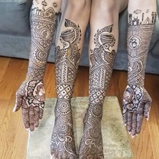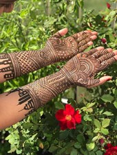 We are the leading Henna Tattoo (Mehndi) artists, dark henna color that last anywhere between one to three weeks. All natural products with a unique creativity, 12 years of experience and skills developed in India an USA. We specialize in traditional Intricate Indian designs, ethnic, Modern, Contemporary designs and exotic patterns on various parts of the body. Specializing and catering to a wide array of events and occasions to make it special and memorable. We have a variety of designs to choose from our albums from the past work or hand sketches. We can also customize any design of your choice. We assure you of a very professional service with very competitive rates that any age group can enjoy. We guarantee you will not be disappointed! WE ARE GROUP OF GIRLS CONDUCTING SMALL TO LARGE EVENTS AND BRIDAL SERVICES. WE CAN ALSO TAKE CARE OF MULTIPLE ORDERS AT A TIME. Please contact Samiya at 6094002775