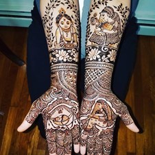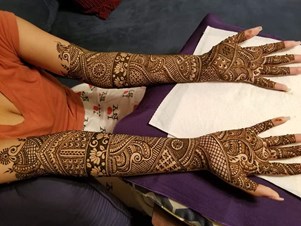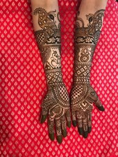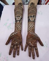Rated 5.0 She and her group did a great work at our henna party of 68 ladies as well as bride. Would love to have them again.