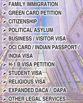 We specialize in the preparation of Immigration and Naturalization paper-work and documents to fulfill your needs. Once the documents have been carefully prepared and edited, we can also directly submit with the United States Citizenship & Immigration Service (USCIS) for its processing. Our expert team consists of Immigration Consultants and Legal Document Assistants, and through their professional skills, hard work and dedication, we deliver fast and effective services at affordable rates.Priority Workers receive 28.6 percent of the annual worldwide limit (about 40,000 visas). All Priority Workers must be the beneficiaries of an approved Immigrant Petition for Foreign Workers. The initial H-1B visa may be issued for up to three years. It may then be extended in the first instance for up to two years, and later on for one year, for a maximum of six(6 ) consecutive years. Occupations that qualify for H-1B visas typically require highly specialized knowledge in a field of human endeavor including, but not limited to: IT, Architecture, Engineering, Mathematics, Physical Scientific Research, Social Science, Biotechnology, HealthCare/Medicine, Education, Law, Accounting, Business, Theology, Arts, Computing, Finance, Accounting, Banking, Marketing, Sales, Recruiting, and Telecommunication.