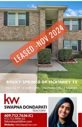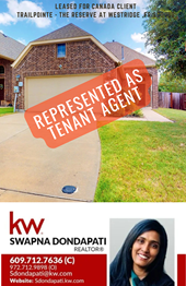 Rated 5.0 Swapna was soooo nice to us!! Relocating from Austin to Dallas was already a stressful challenge and Swapna made it so much smoother helping us find a house we would like. We are very picky and coming from owning a beautiful custom home to leasing in a whole new area Swapna understood the assignment. Swapna will negotiate on your behalf and make sure you’re getting the best deal, she will not let you be taken advantage of and she cares about her clients. Thank you Swapna!!! We will recommend :)
