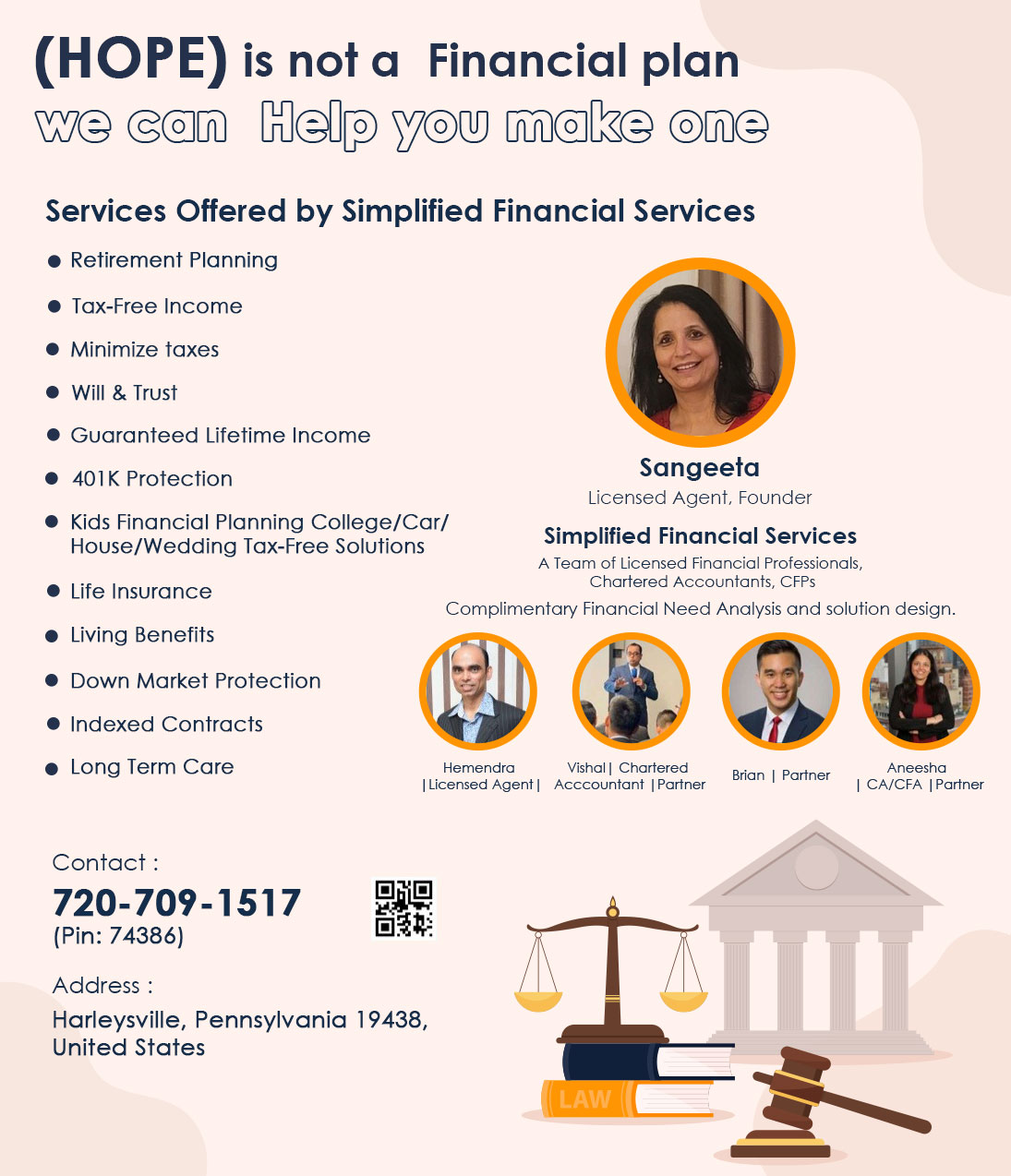 Sangeeta Ramchandani is a dedicated financial professional located in Pennsylvania and licensed through multiple state authorities to serve clients in all 50 states. She helps individuals and families plan their finances with clarity and confidence by understanding each client’s unique goals and financial priorities. Sangeeta offers personalized guidance across financial planning, investments, retirement preparation, and risk management. With a strong commitment to transparency and long-term relationships, she provides practical strategies designed to support both immediate needs and future aspirations. Her client-focused approach ensures thoughtful advice and dependable support at every stage of the financial journey.