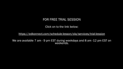 We're one of the most distinguished educational tutoring company conducting online lessons specialized in K-12 Math, K-12 ELA, SAT/ACT, PSAT and SSAT. Request for Free Trial Lesson by visiting https://edkonnect.com email: admin