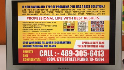 I am one of the most distinguished Astrologers in Plano, TX. I specialize in Indian Astrologers,Birth Chart Astrology,Black Magic Remedy Experts,Computer Horoscope,Crystal Ball Reading,Face Reading Specialist,Financial Astrology,Gemologist,Horoscope Services,Marriage Astrology,Numerology,Prasanna Jothidam Astrology,Relationship Astrology,Telugu Astrologers,Vashikaran Astrologers,Vastu Specialist,Vedic AstrologyExpert in : destroy and remove black magic remedies and loved ones backYes I will remove