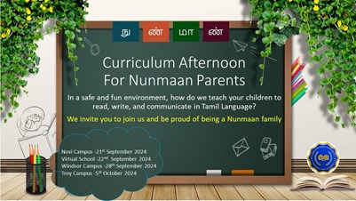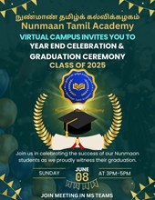 At Nunmaan Tamil Academy, we believe in honouring the richness of Tamil language and heritage while embracing modern learning. From immersive in-person classes in Troy, Novi and Windsor to flexible virtual sessions, we offer engaging Tamil language programmes for both young learners and adults. Our dedicated volunteer teachers bring years of experience, using a curriculum that emphasizes speaking, reading and cultural confidence. Whether you’re looking to deepen your connection to Tamil roots or help a child grow bilingually, Nunmaan is committed to nurturing language fluency, celebrating cultural identity and empowering every student to carry Tamil into the next generation.